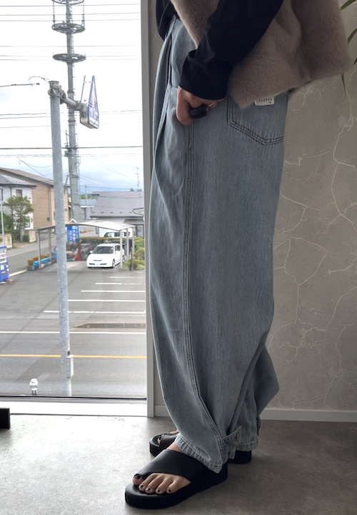 柔らかく落ち感のあるデニム生地を使用しているので、リラックス感のあるシルエットになっています。