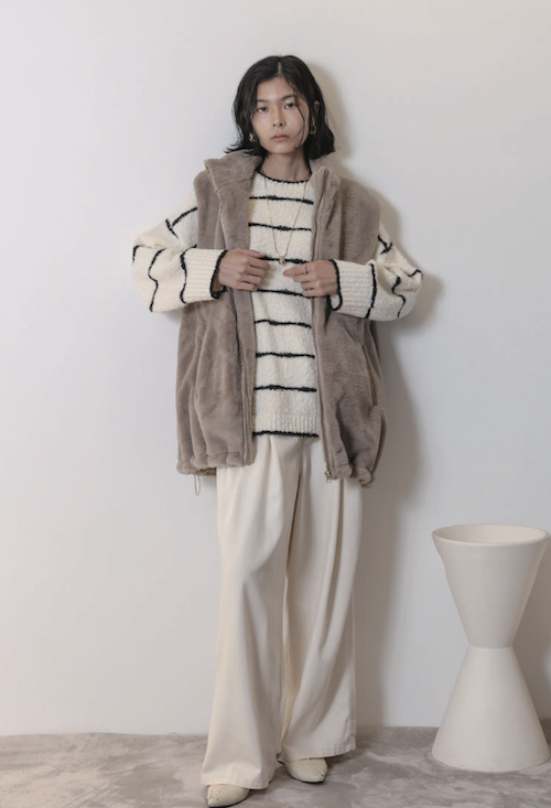 シルエットはオーバーサイズでゆったりとしたシルエットが女性らしい一枚です。