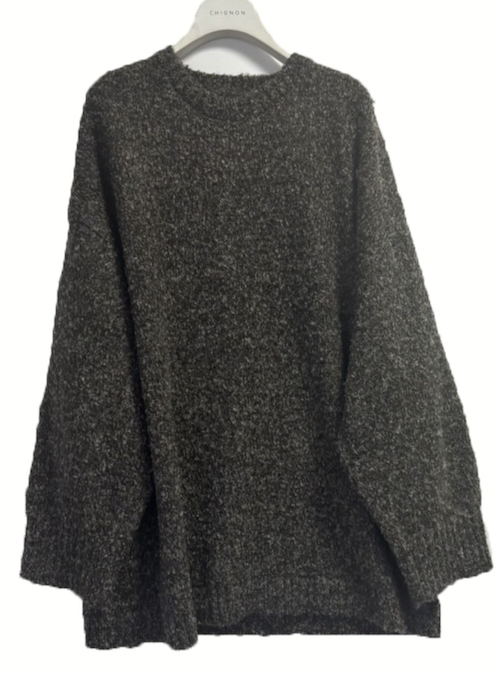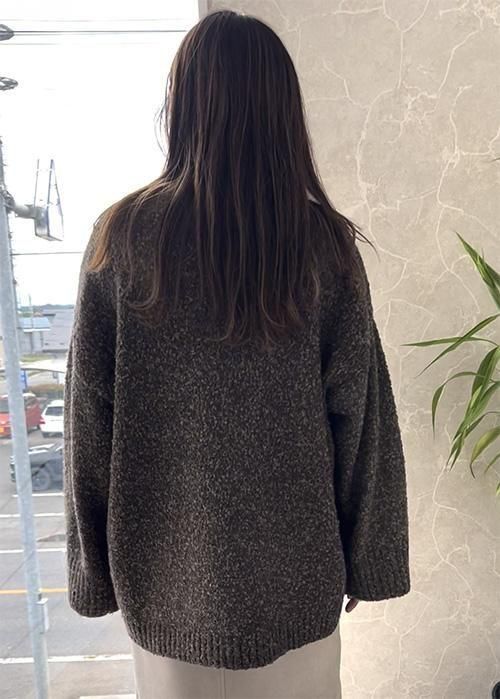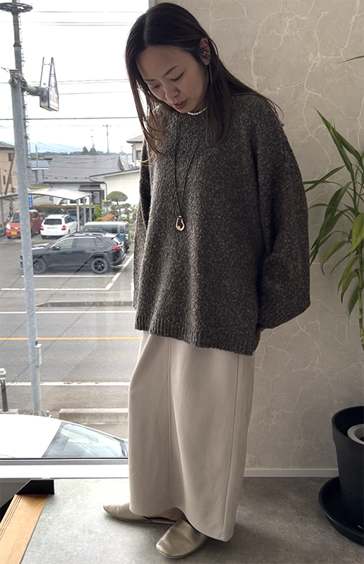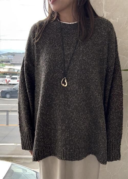 糸はポコポコとした表面感が可愛い、小さいループのブークレを使用したニットプルオーバー。