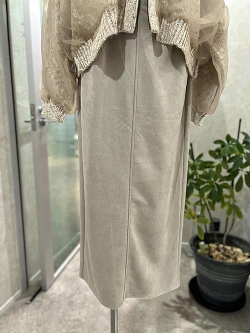 スエードダンボール生地を使用したIラインシルエットのタイトスカートです。