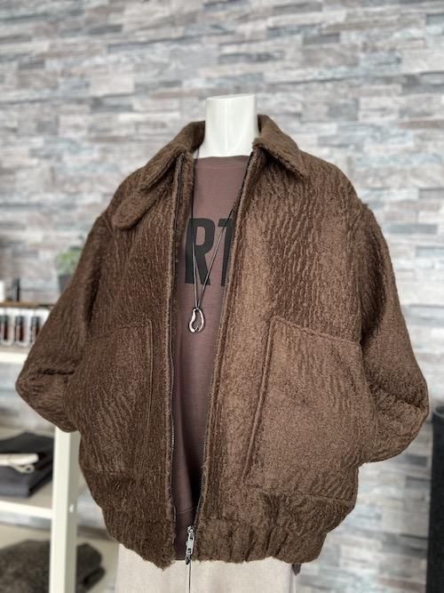 ブークレ素材が可愛いブルゾンタイプのアウター