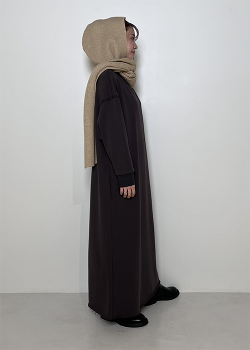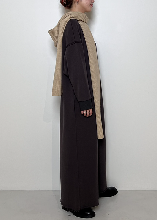 一巻きするだけでフード付きのアイテムをレイヤードしているようなスタイリングを作ることができます。