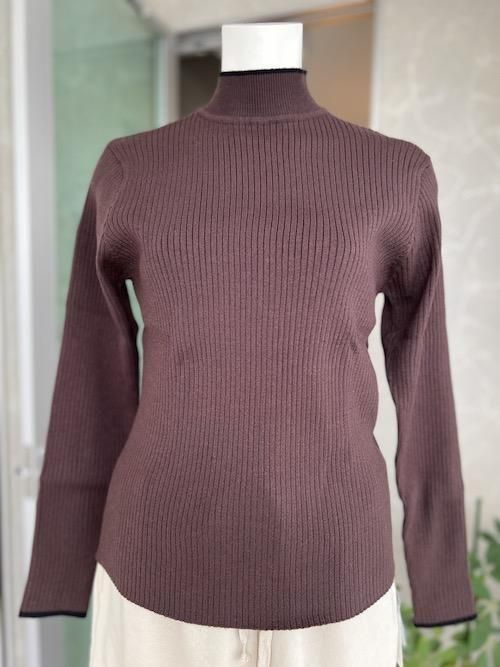 【10%OFF】配色リブニット(ブラウン×ブラック)