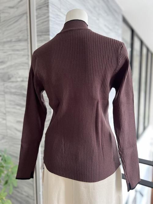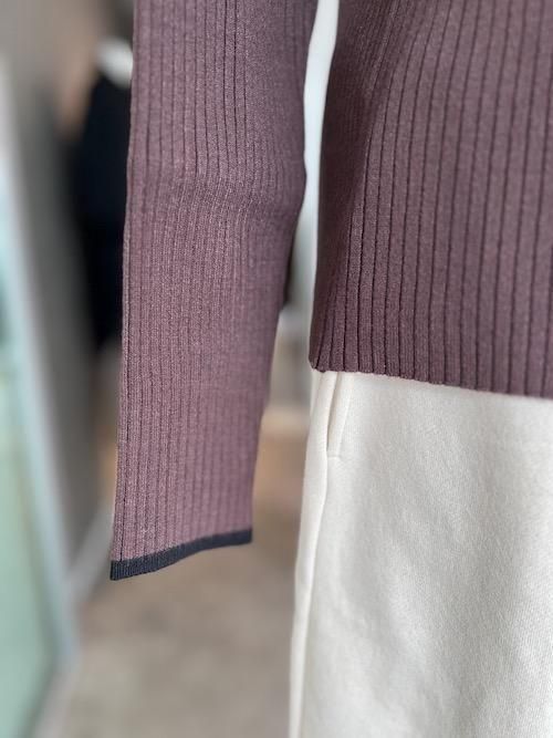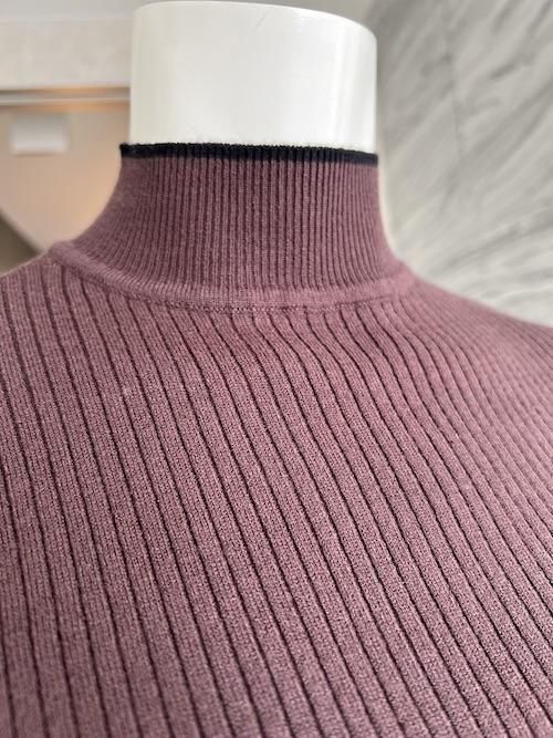 襟先と袖口に遊び心のある配色を施したボトルネックリブニット