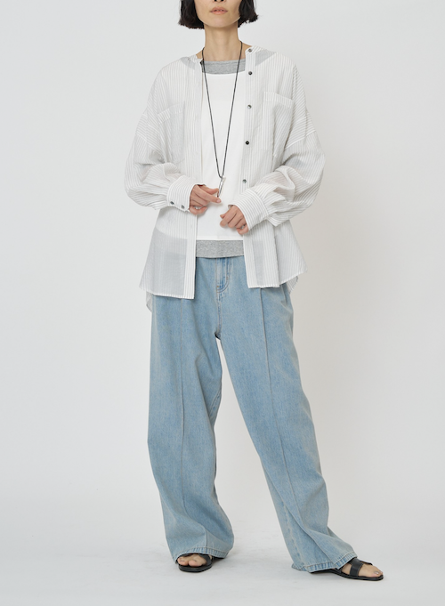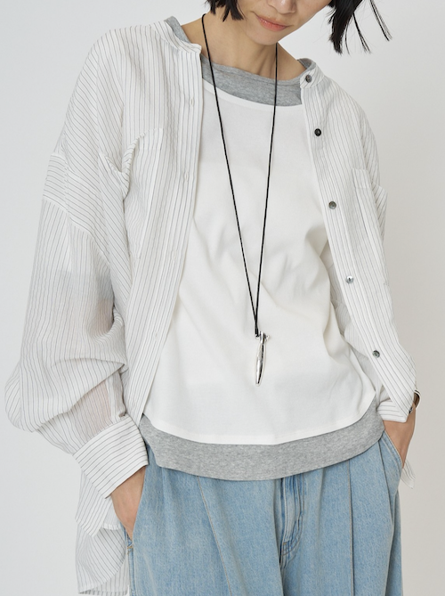 ニットやスウェットの下に重ねてシアー感を楽しんだり、Tシャツやタンクトップの上に軽く羽織って日除け・冷房対策にもでき、長いシーズン活躍するアイテムです。