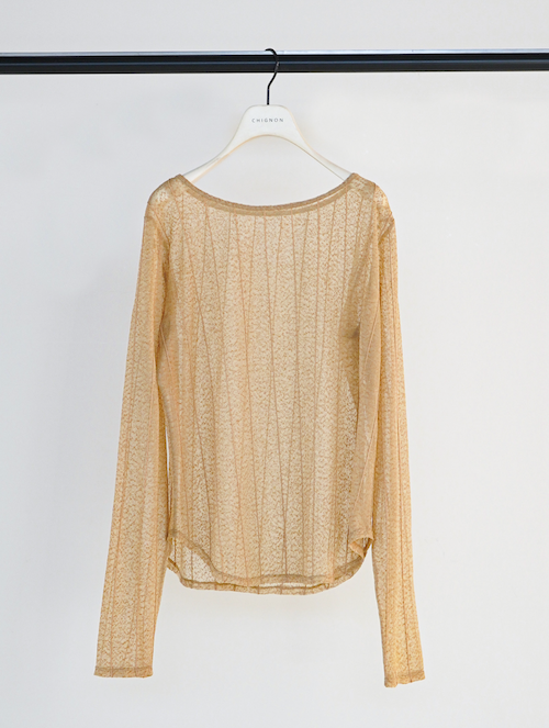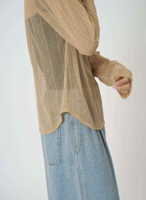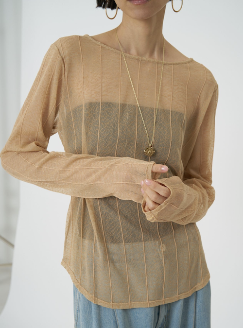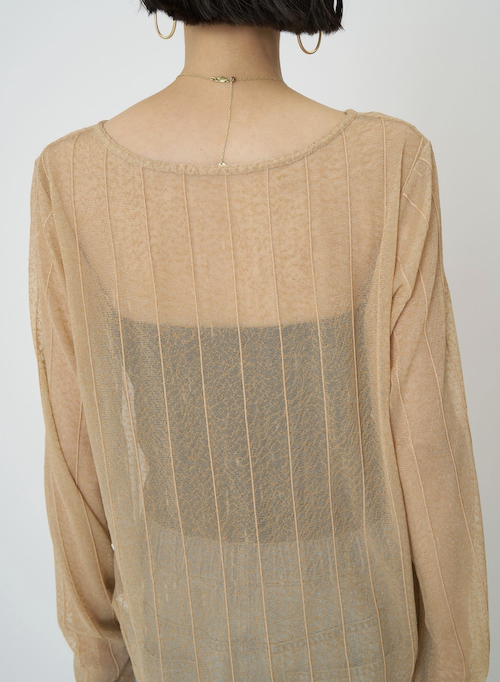 繊細なストライプ柄チュールを使用した、ほどよい透け感とゆるさが絶妙なシアートップス。