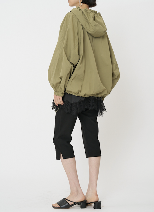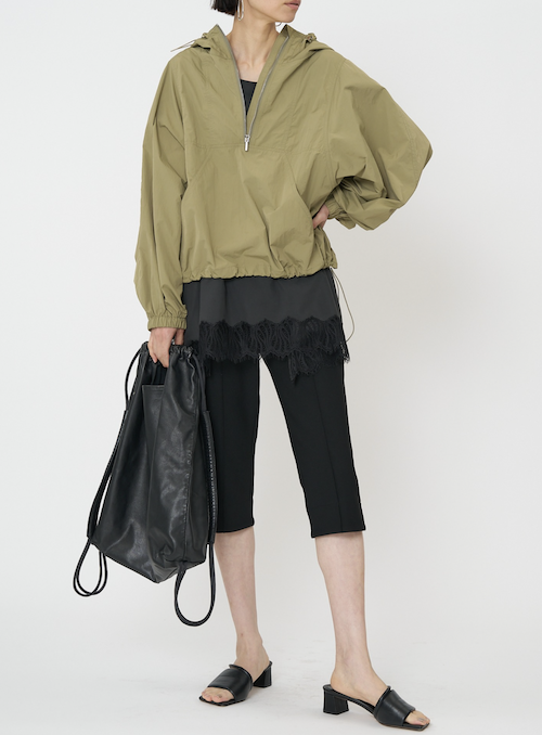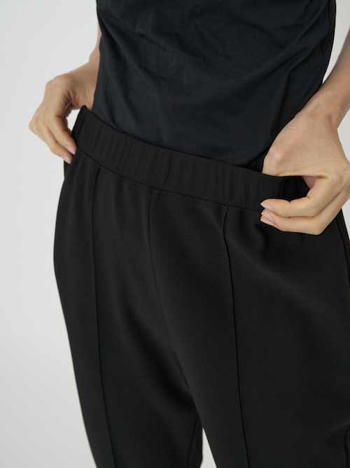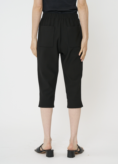 伸びの良いジョーゼットボンディングを使用した、シルエットにこだわったカプリパンツ。
