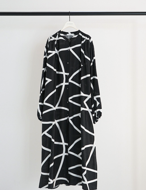 大胆なライン柄が印象的な、軽やかな着心地のロングシャツワンピース。