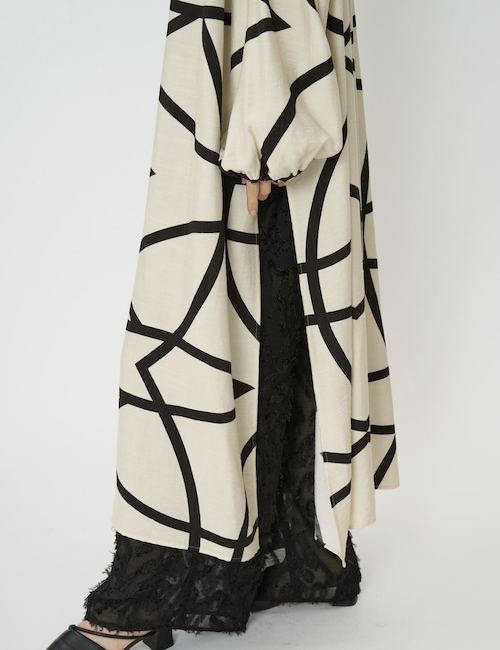 両脇には大胆なスリットを施し、動くたびに軽やかに揺れるデザイン。