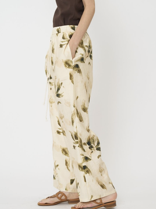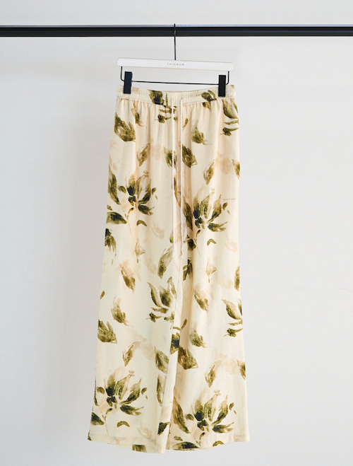 ゆったりとしたシルエットながらもすっきり見えるデザインに仕上げました。ウエストは総ゴム仕様で、ストレスのない穿き心地。