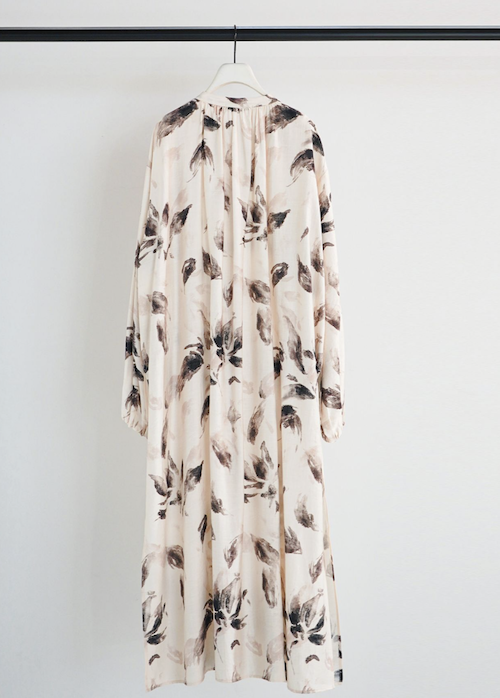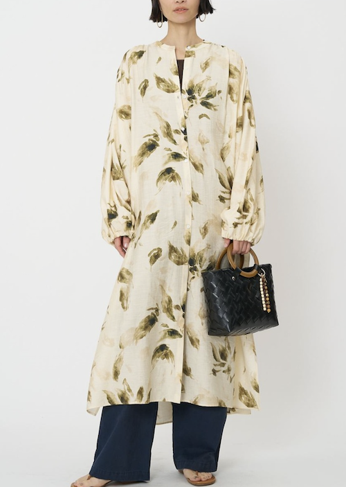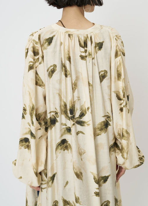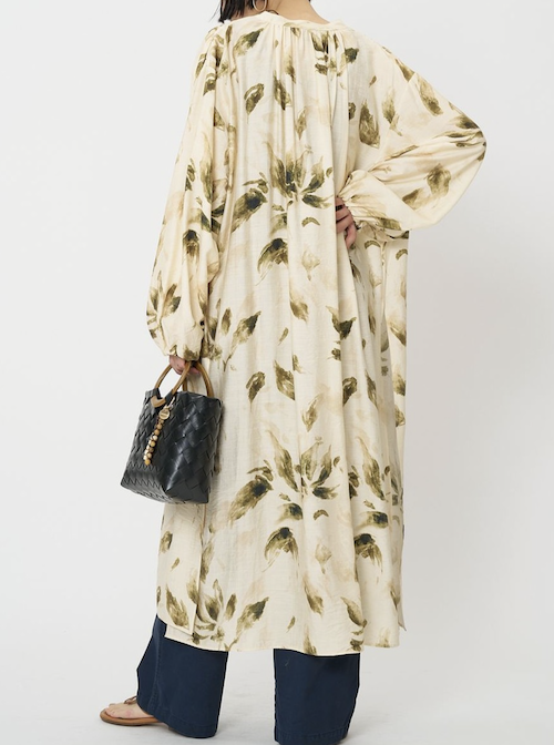 さらりとした素材感とゆとりのあるシルエットで、袖口にはさりげないギャザーを寄せ、ボリュームのあるスリーブが女性らしい柔らかさをプラス。
