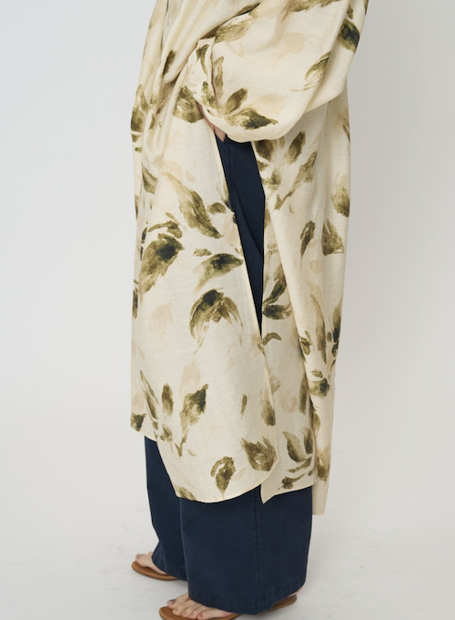 両脇には大胆なスリットを施し、動くたびに軽やかに揺れるデザイン。
