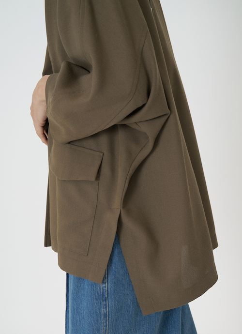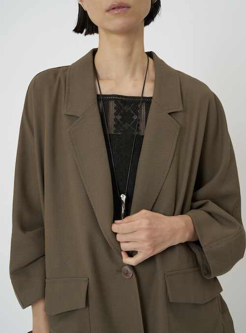 麻混のメッシュ素材を使用した、ドルマンスリーブジャケット。