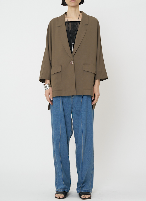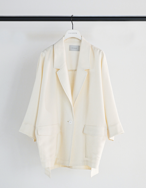 去年人気だったドルマンジャケットをシングルに変更して、衿の刻み位置や衿のサイズを変えて、今年らしくブラッシュアップさせた夏まで使えるお勧めのジャケットです!