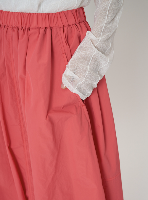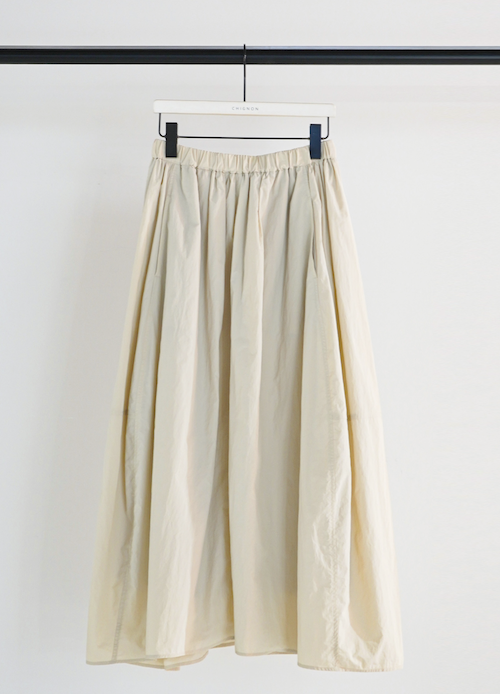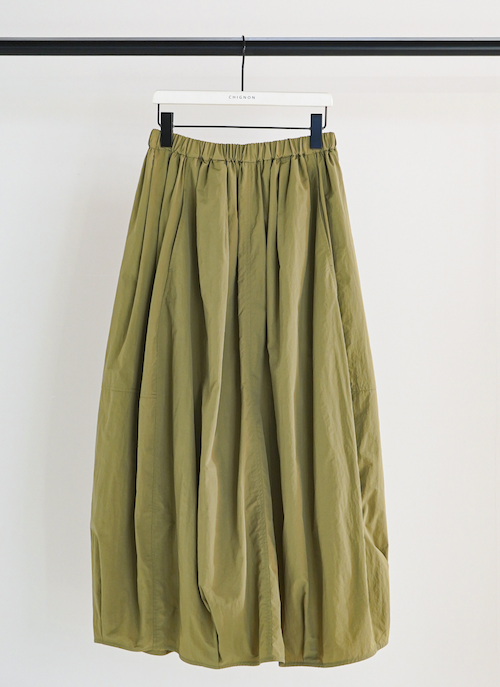 程よい膨らみ感に仕上げているので、可愛くなり過ぎず、トップスのシルエットを選ばない着回しの効く優秀スカート。