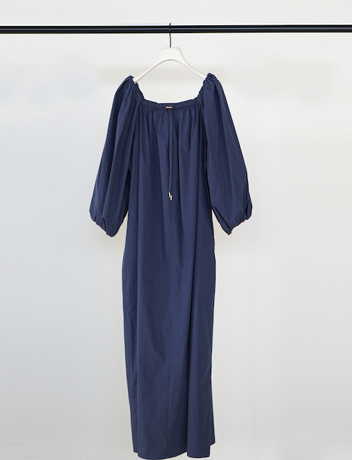 広く開いた衿ぐりがデコルテをすっきりと見せてくれる、リラクシーな大人ワンピース。