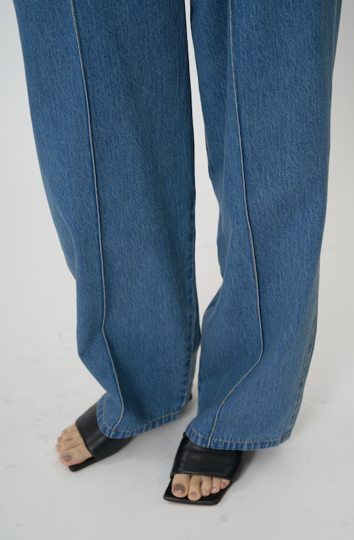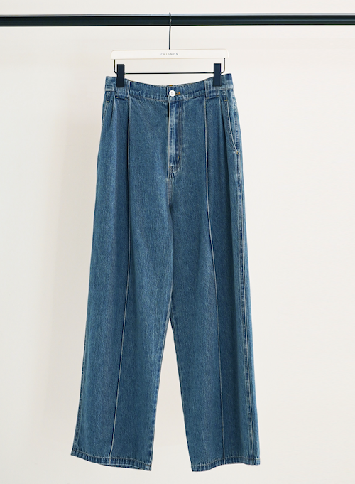 センターのピンタックステッチが視覚的に足をまっすぐに見せ、程よいリラックス感がありつつも、美しいシルエットに仕上げています。