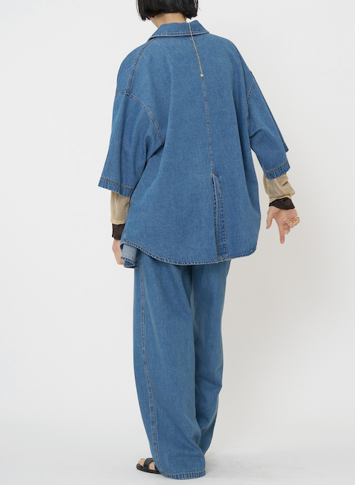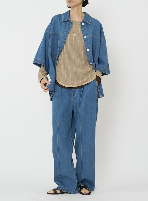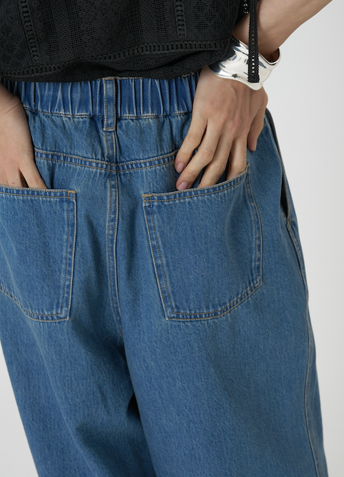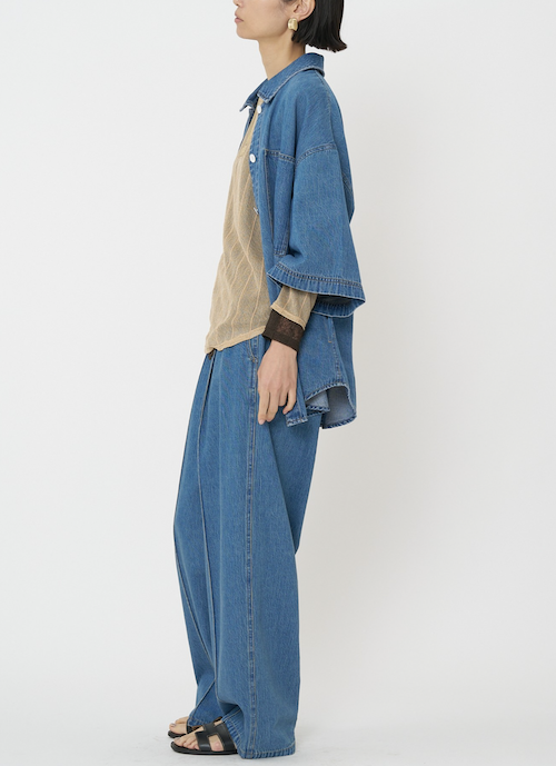 リヨセル混の柔らかな落ち感が特徴のデニム素材を使用した、カジュアルながらも女性らしさを引き立てる一着。