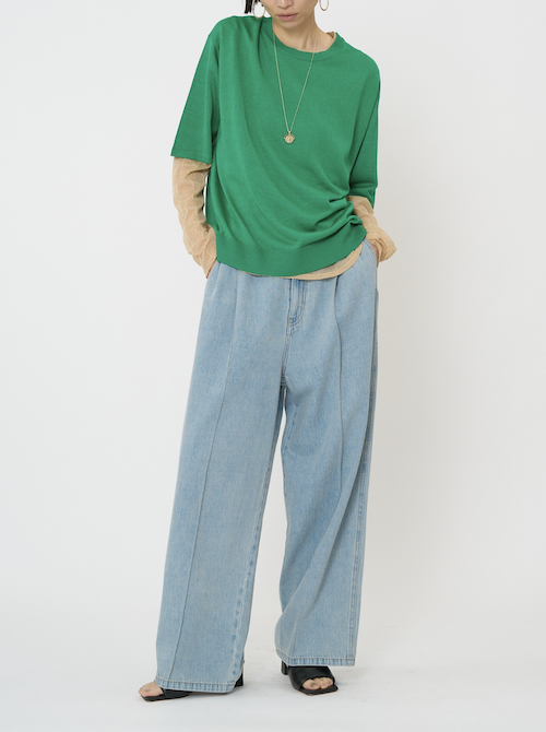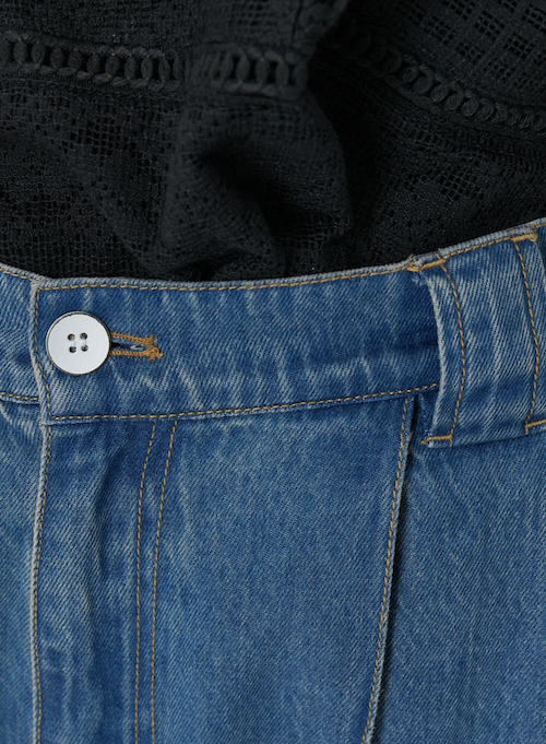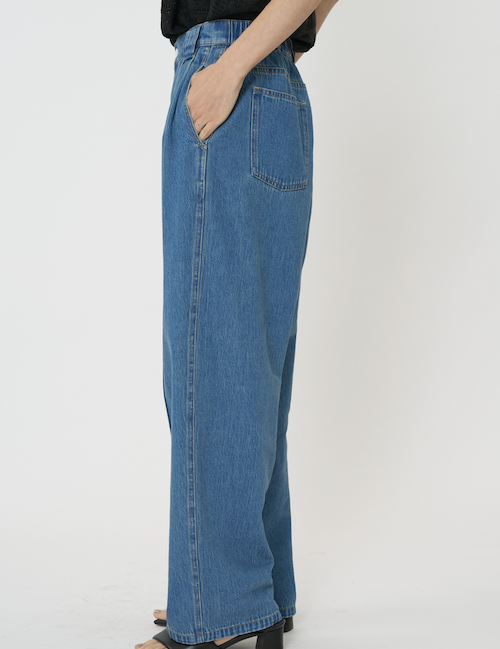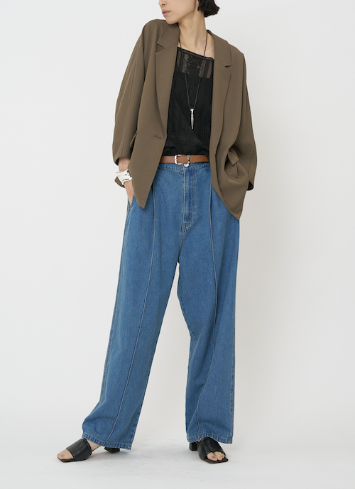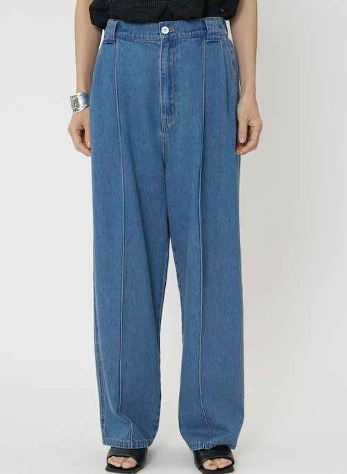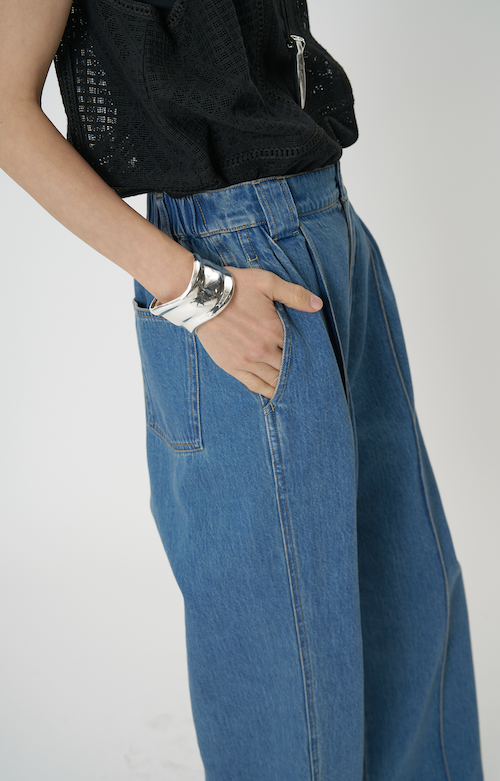 スラックスを思わせる2タックデザインをデニムに落とし込みました。