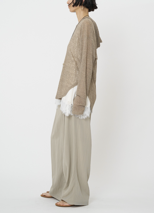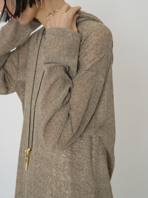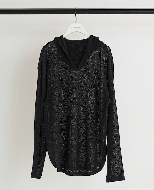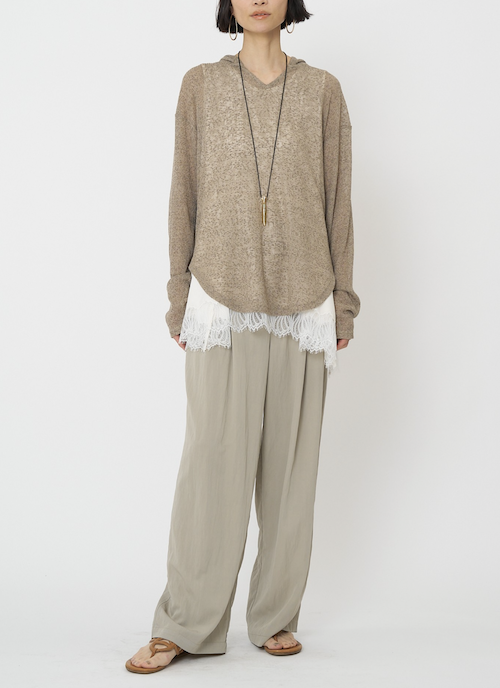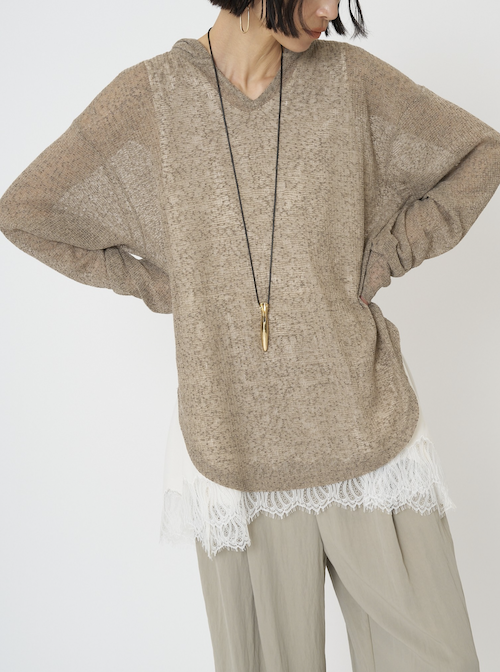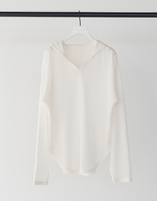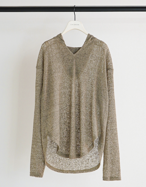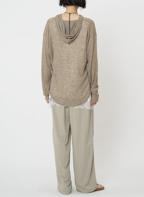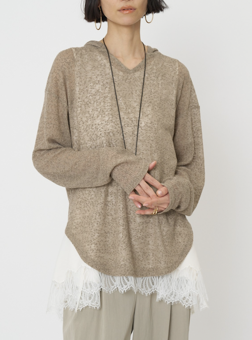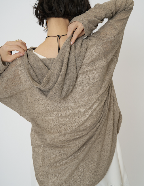 定番のフーディを、少しシアー感のある麻ブレンドのニットソー素材で。
