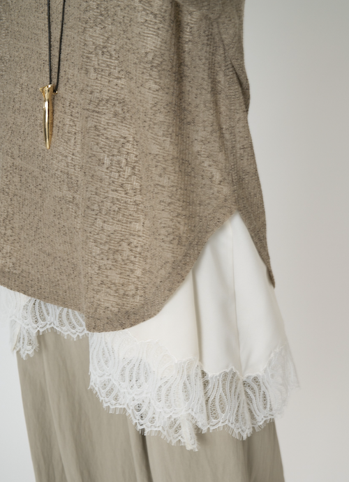 さらっとした快適な肌触りに加え、前襟ぐりに入れたスリットが女性らしい華奢な印象を引き立てます。