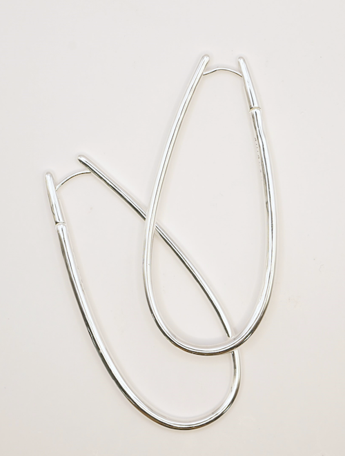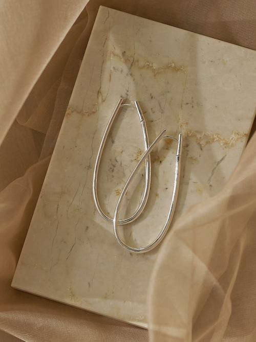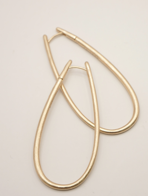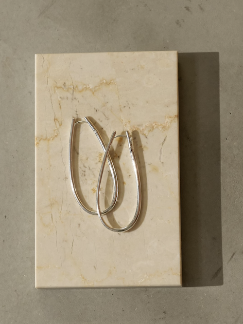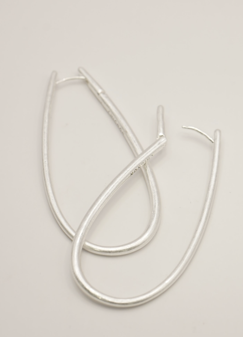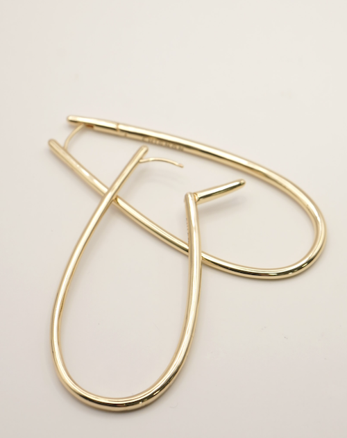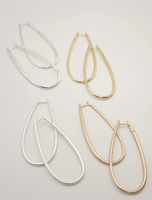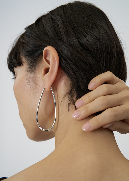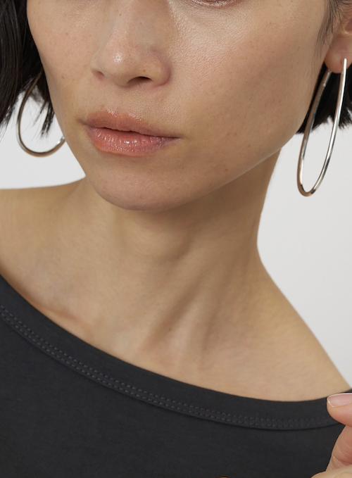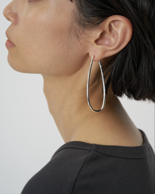ドロップ型の大振りフープピアスは、後ろから見てもシンプルで無駄のない仕様にしています。
