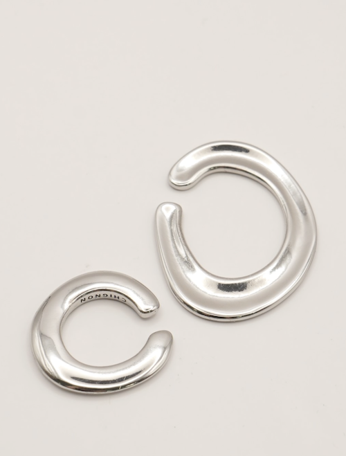 それぞれ大きさや表面のテクスチャーの違う2個セットのイヤカフは、