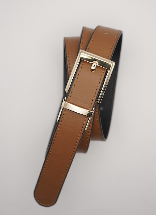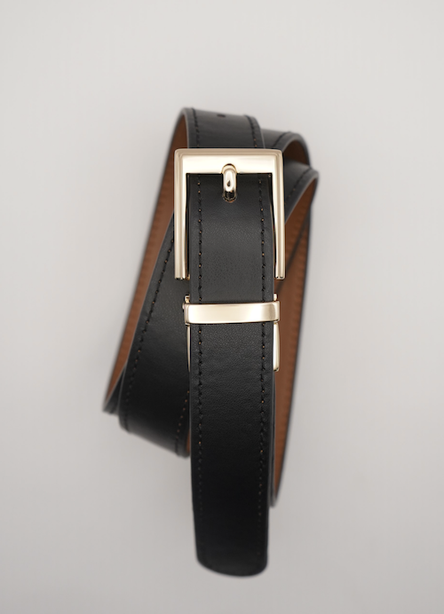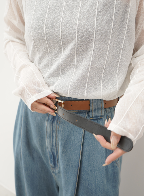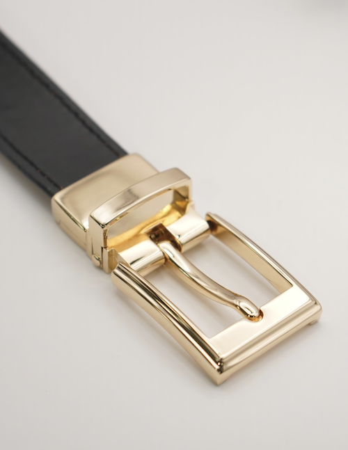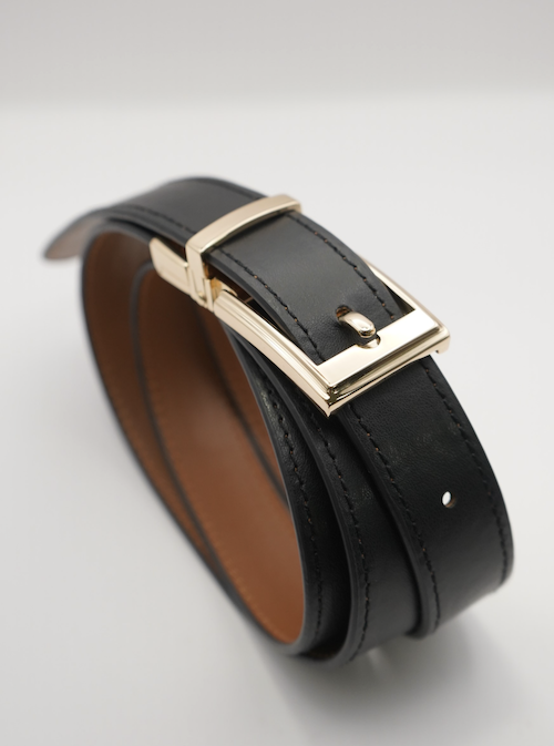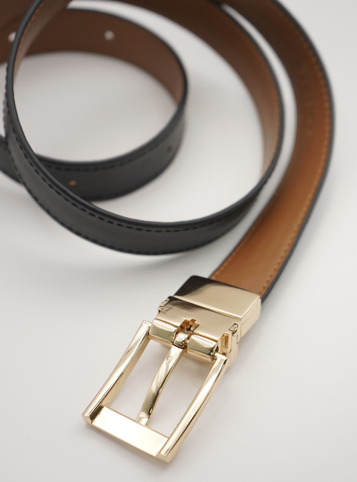 バックルを180度回転すると表裏両面使えるリバーシブル仕様の2WAYベルトです。