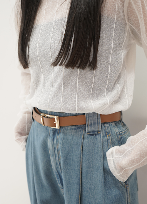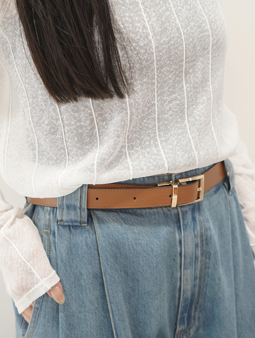 お色はブラウン×ブラック、形もシンプルなので様々な洋服に合わせやすい万能ベルトとなっております。