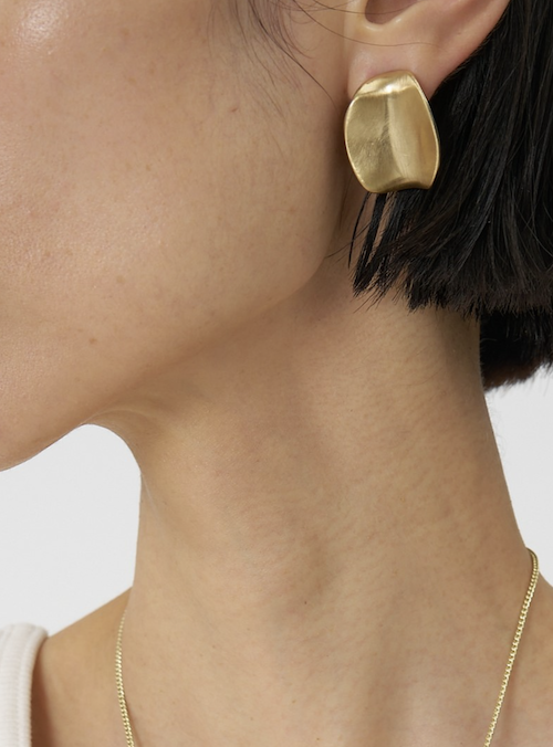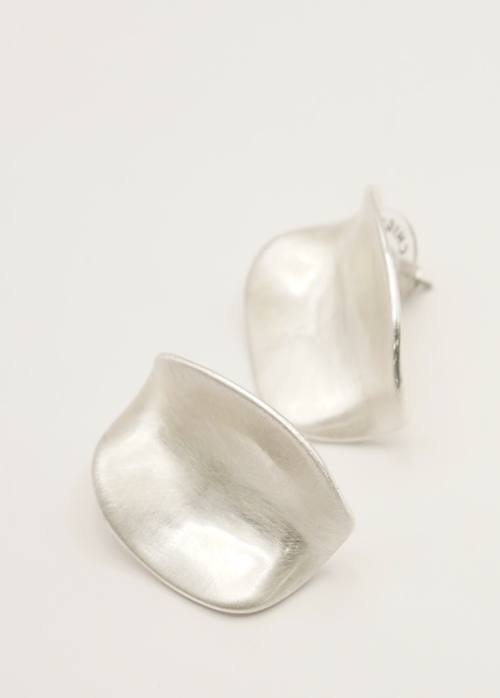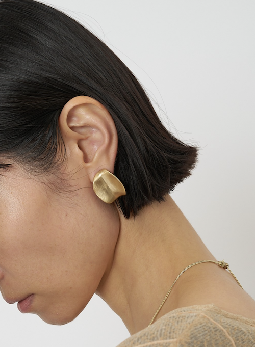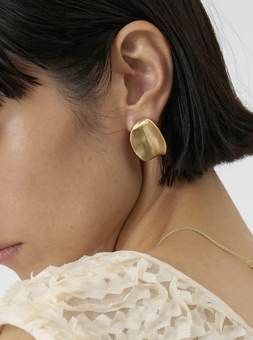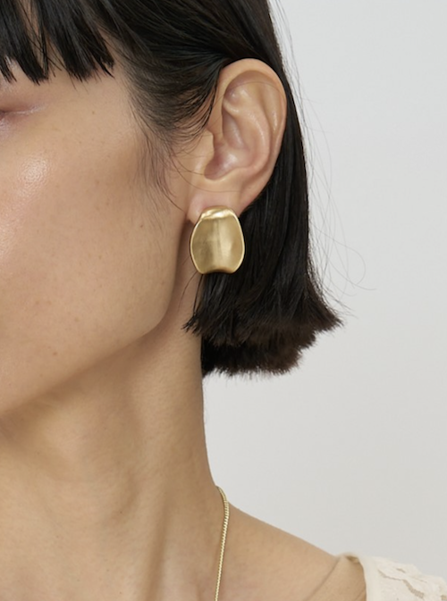 細やかなヘアライン加工が入った滑らかな凹凸プレートピアスは、丁度いいサイズ感とややマットなつや感でどんなコーデにも合わせやすいデザインとなっております。