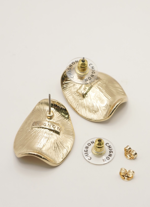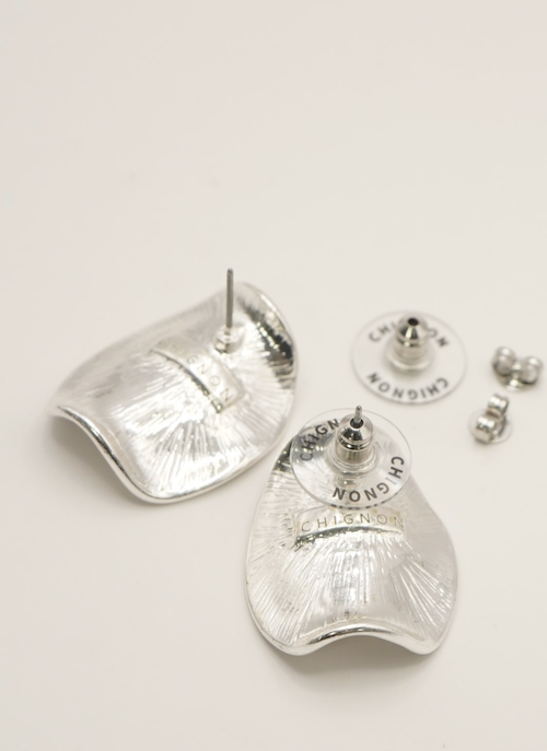 こちらのピアスは真鍮キャッチ&円盤キャッチ付きとなっております。背面には「CHIGNON」の刻印入り。
