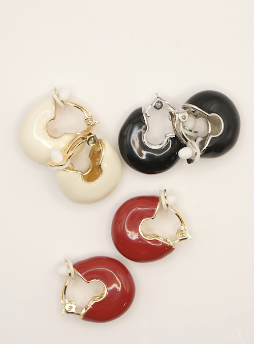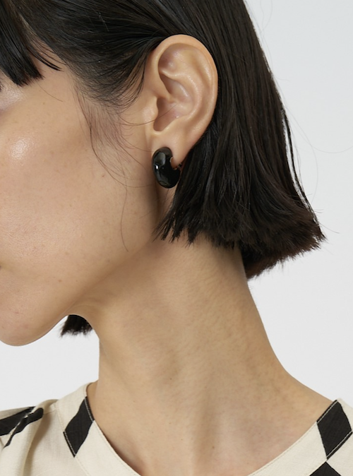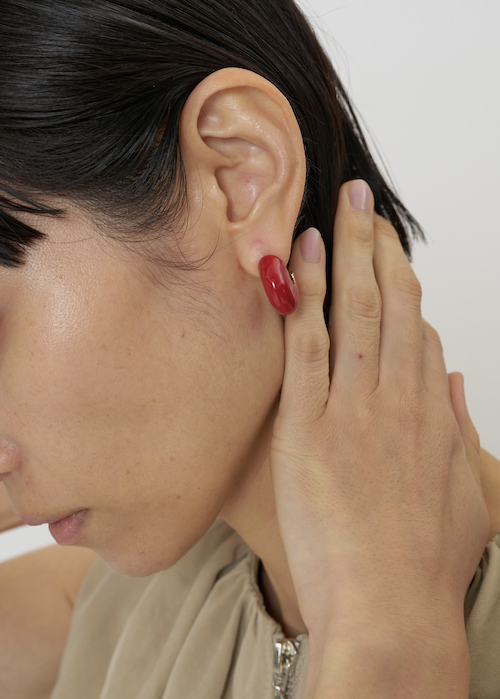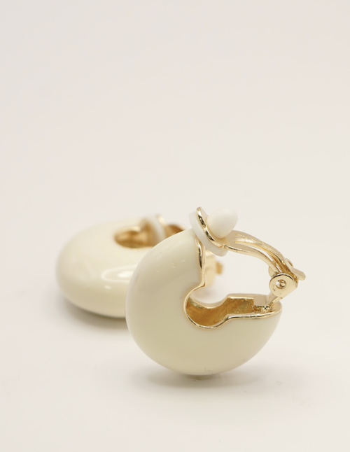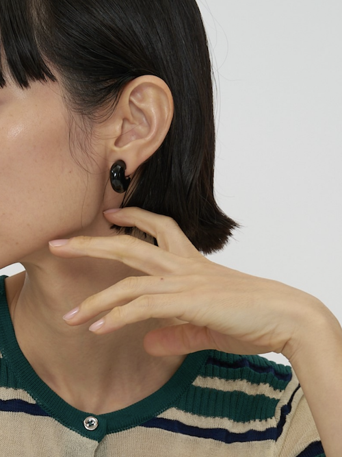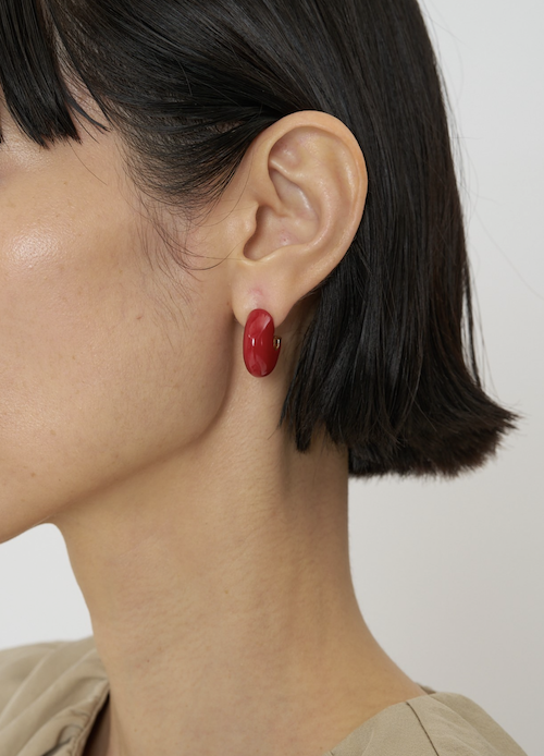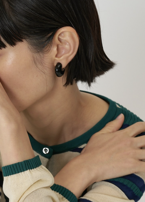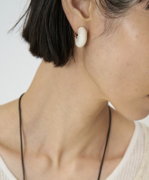 ころんと丸みのあるフープにエポ樹脂を施したミニイヤリングは、程よいボリューム感と存在感があり、着けるだけでいつものコーデをぐっと引き締めてくれます。