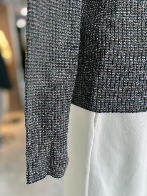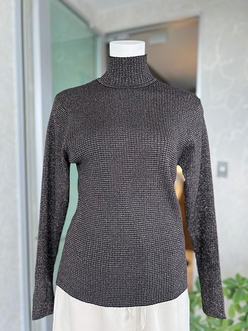 ラメ糸を引き揃えて編みたてたリブニット
